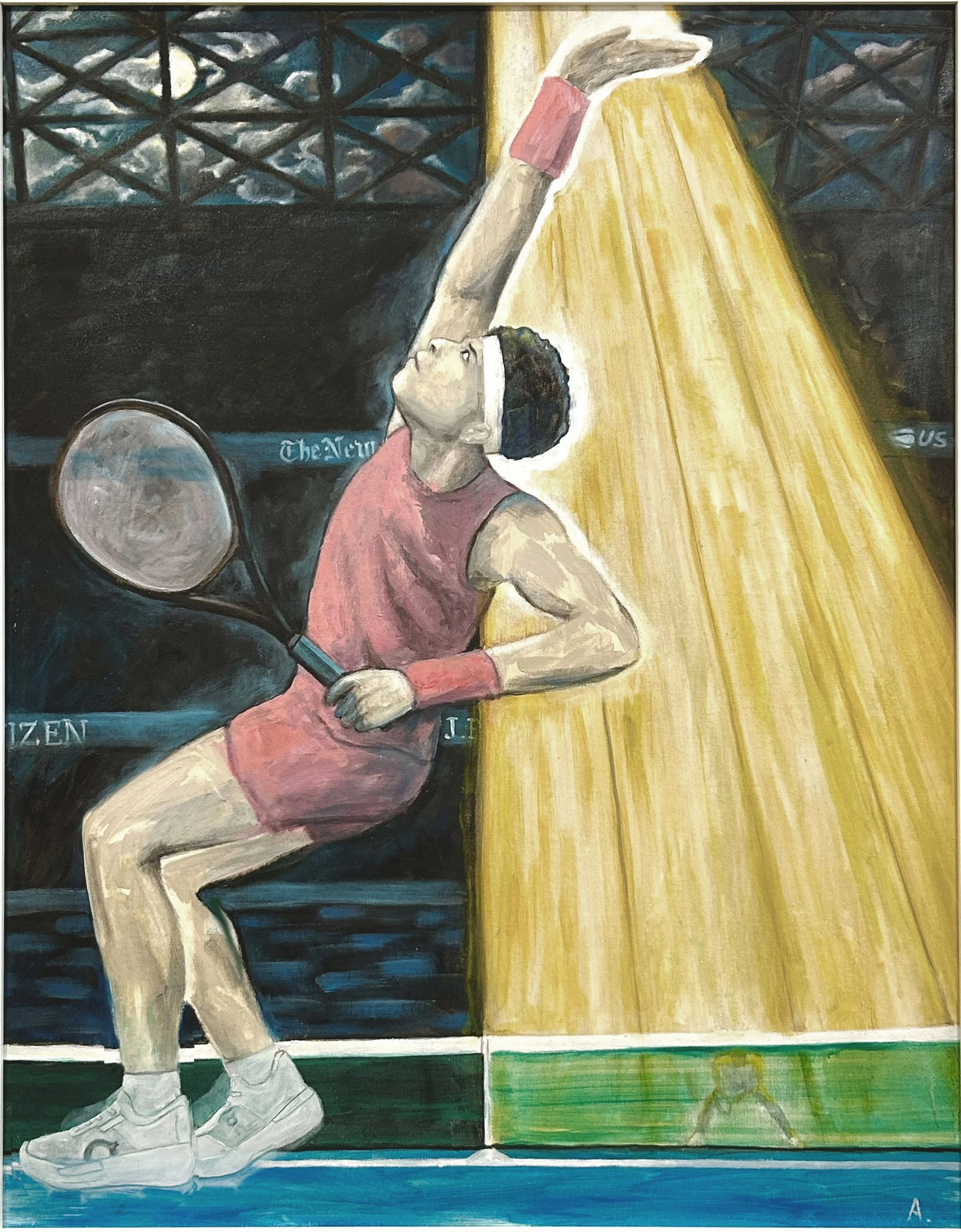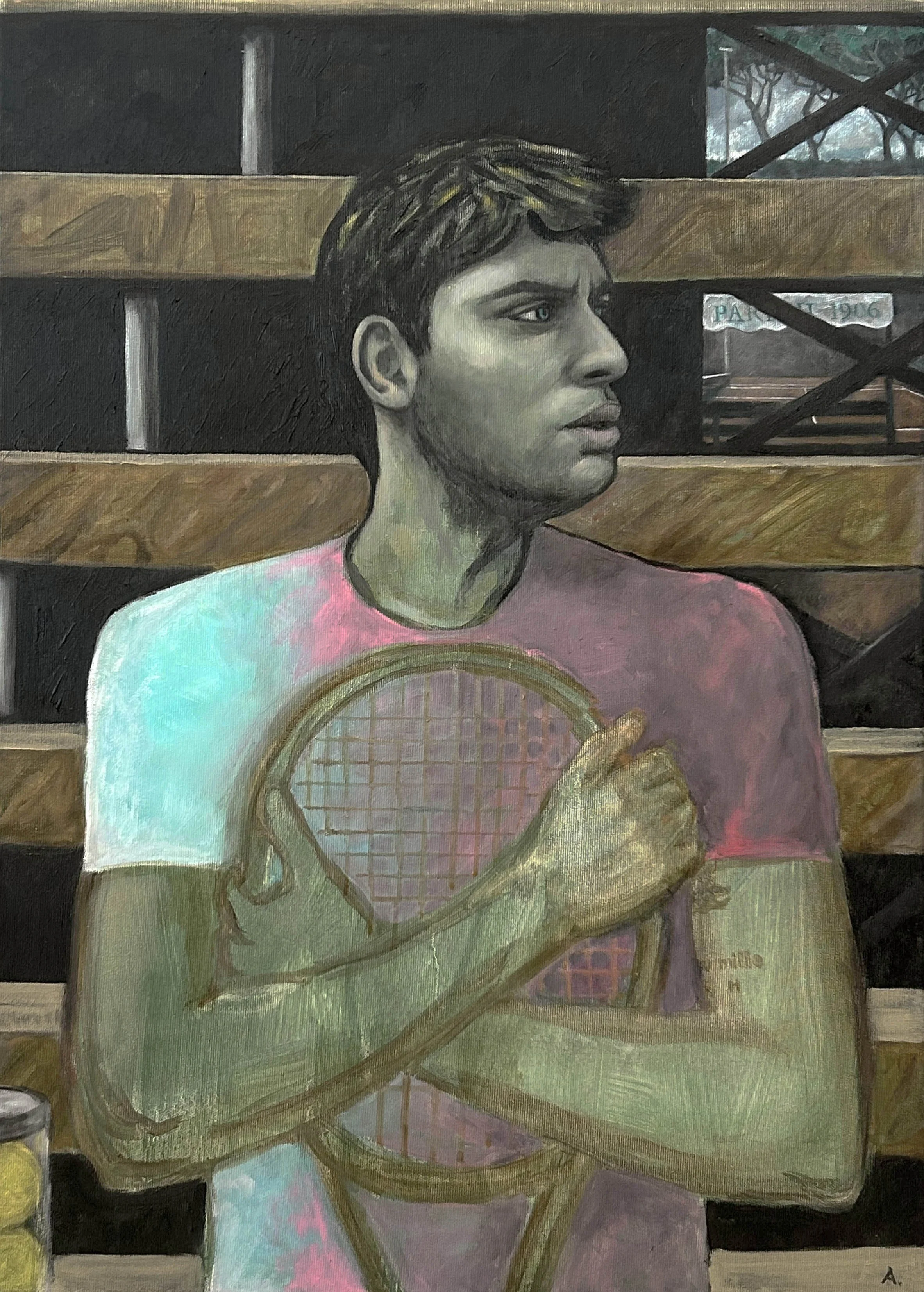 A project that stretched over a year, On commissioned me to paint portraits of their tennis roster. Starting with Iga Swiatek and presented to the athlete at the French Open in May 2024, followed by Ben Shelton at the US Open in September, Flavio Cobolli at Melbourne in 2025 and finally Joao Fonseca for the 2025 US Open. The paintings were intended for the athletes homes, and not for publicity – aside from my own.